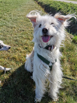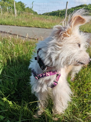»Opi« wurde mit 15 Jahren von seiner Familie verstoßen, weil er zweimal auf den Teppich gepinkelt hat und angeblich dement ist. Auf der Arche feiert er nun ganz oft Geburtstag, wird geknuddelt und hat eine persönliche Gassigeherin. Er ist wieder glücklich.