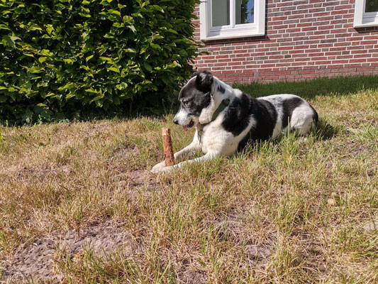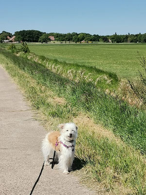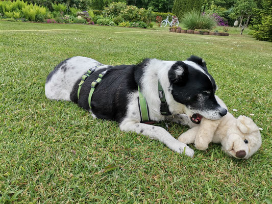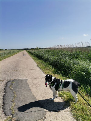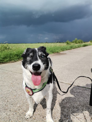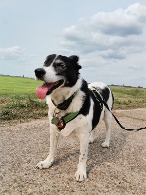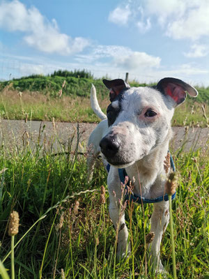 Die blinde Hündin Thea verbrachte die ersten vier Jahre ihres Lebens an einer 70cm-Kette, wurde misshandelt, die Ohren und Schwanz abgeschnitten. Gott sei Dank informierte ein Nachbar den Tierschutz. Seit fünf Jahren lebt sie glücklich auf der Mitlinger Tierarche und zaubert allen Besuchern mit ihrem frohen Gemüt ein Lächeln auf die Lippen. Foto: Hülsebus